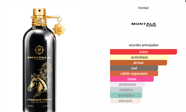 Arabians Tonka de Montale es una fragancia de la familia olfativa Oriental Amaderada. Arabians Tonka se lanzó en 2019. Las Notas de Salida son azafrán y bergamota; las Notas de Corazón son madera de oud y rosa de Bulgaria (rosa Damascena de Bulgaria); las Notas de Fondo son haba tonka, caña de azúcar, ámbar, almizcle blanco y musgo de roble.